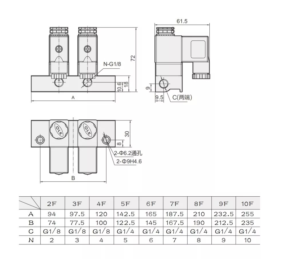 ເຖິງ 10 pcs ປ່ຽງ solenoid 2V025 ສາມາດປະກອບເປັນວາວ manifold.