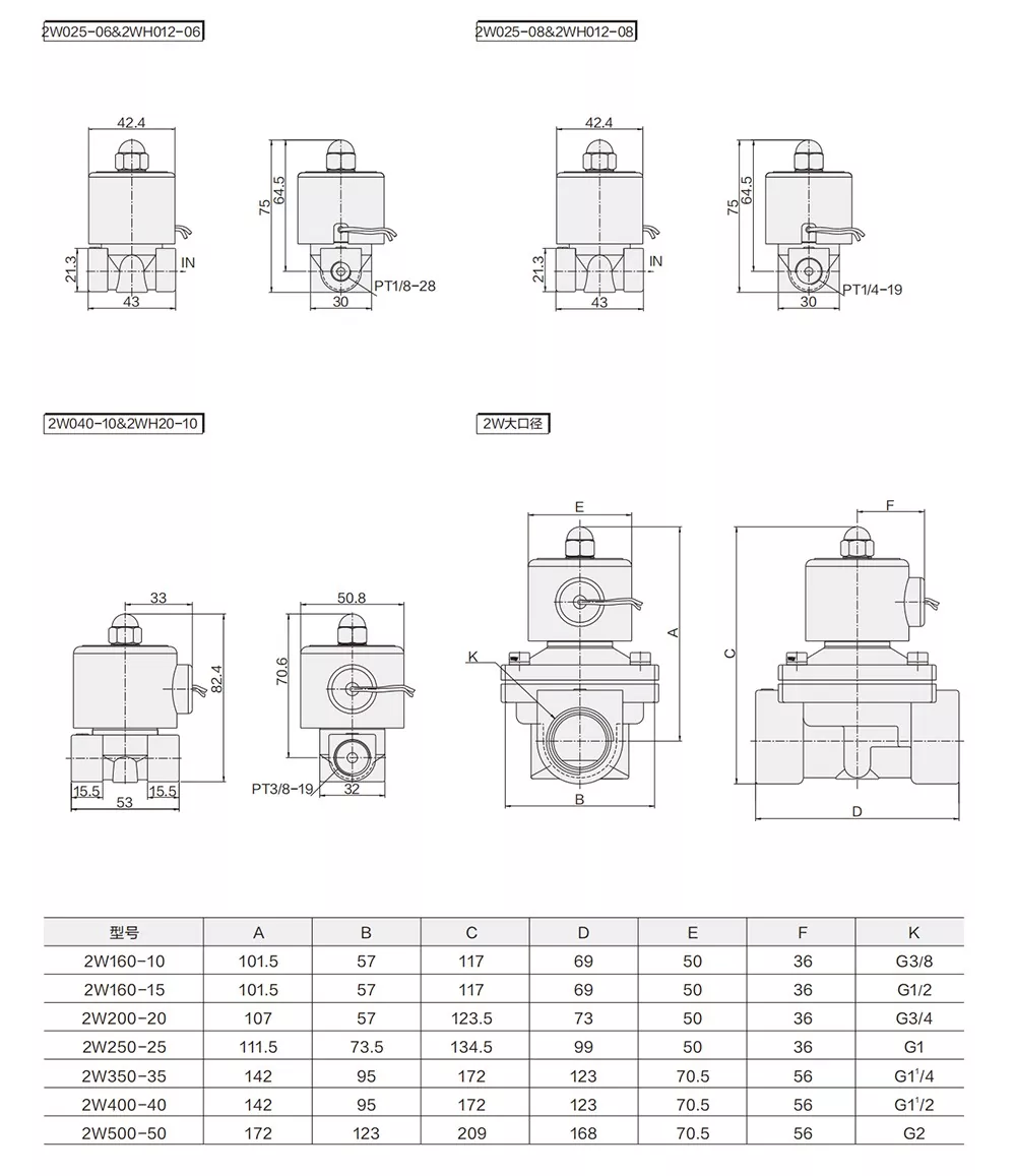 ②ຂະຫນາດໃຫຍ່ orific ຂະຫນາດ - ລະຫັດຮູບແບບ 2W ຊຸດ (16mm-50mm)