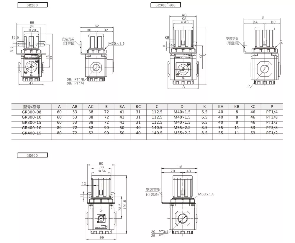 ອຸປະກອນຄວບຄຸມຄວາມກົດດັນ GR300 ຊຸດ