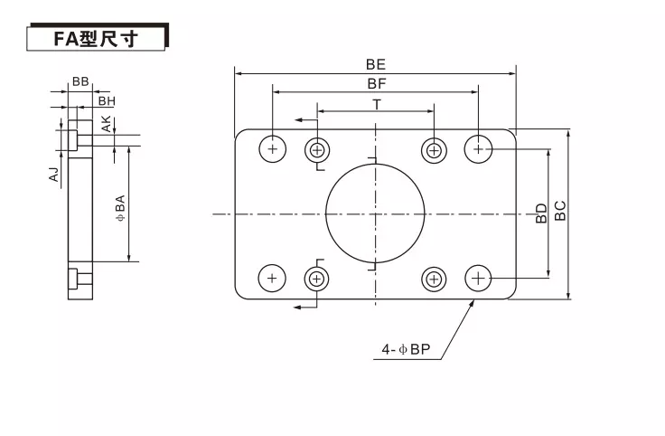 ຮູທີ່ມີການຕິດຕັ້ງຂອງຖັງທີ່ແຕກຕ່າງກັນມີຕໍາແຫນ່ງທີ່ແຕກຕ່າງກັນ, ແລະກົງກັບແຜ່ນຂົນສົ່ງ Fa ຄວນຖືກນໍາໃຊ້. ແຜ່ນທຸງ FA ຂອງ FA Series ນີ້ສາມາດໃຊ້ກັບກະບອກມາດຕະຖານ SC series.