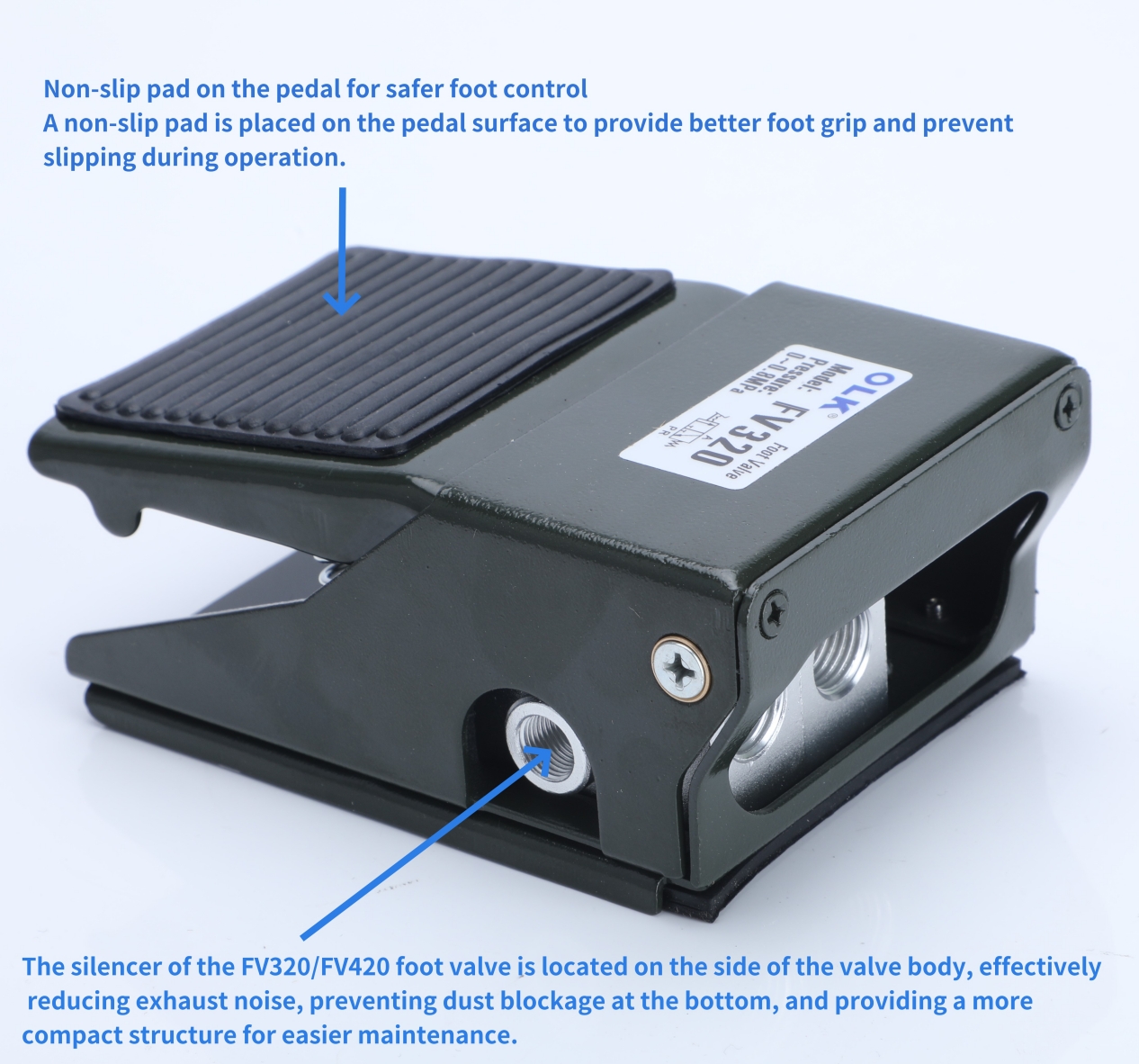 FV320 ແມ່ນໃຊ້ໃນການຄວບຄຸມກະບອກສູບອາກາດທີ່ສະແດງ. ກະບອກສູບ pedal ຍືດອອກແລະການປ່ອຍ pedal ປ່ອຍກະບອກ