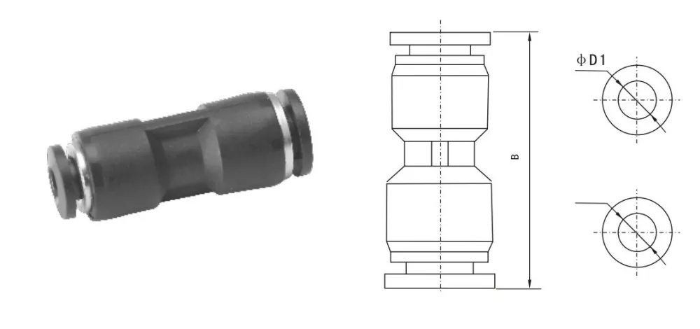 Pu Pu ເຊື່ອມຕໍ່ທໍ່ນ້ໍາດຽວກັນທັງສອງດ້ານ, PG ເຊື່ອມຕໍ່ທໍ່ອາກາດທີ່ມີເສັ້ນຜ່າສູນກາງທີ່ແຕກຕ່າງກັນທັງສອງດ້ານ