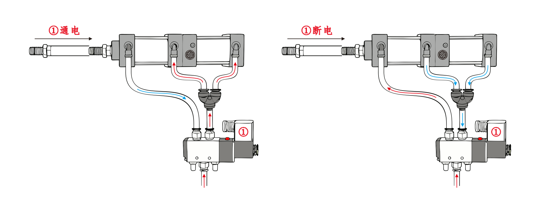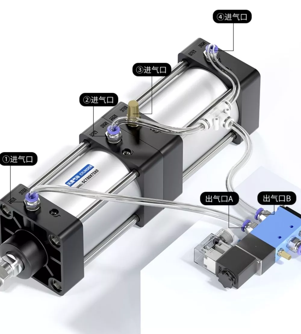 ເຄື່ອງປະດັບອາກາດຂອງ Cylinder ອາກາດທີ່ຢູ່ໃນຖັງທີ່ເຊື່ອມຕໍ່ກັບ silenceer. ໃນເວລາທີ່ port a ຂອງປ່ຽງ solenoid ແມ່ນ energized, ກະບອກສູບຢູ່ໃນຕໍາແຫນ່ງ retracted. ໃນເວລາທີ່ port b ແມ່ນ energized, ກະບອກສູບເລີ່ມຕົ້ນທີ່ຈະດໍາເນີນງານ.